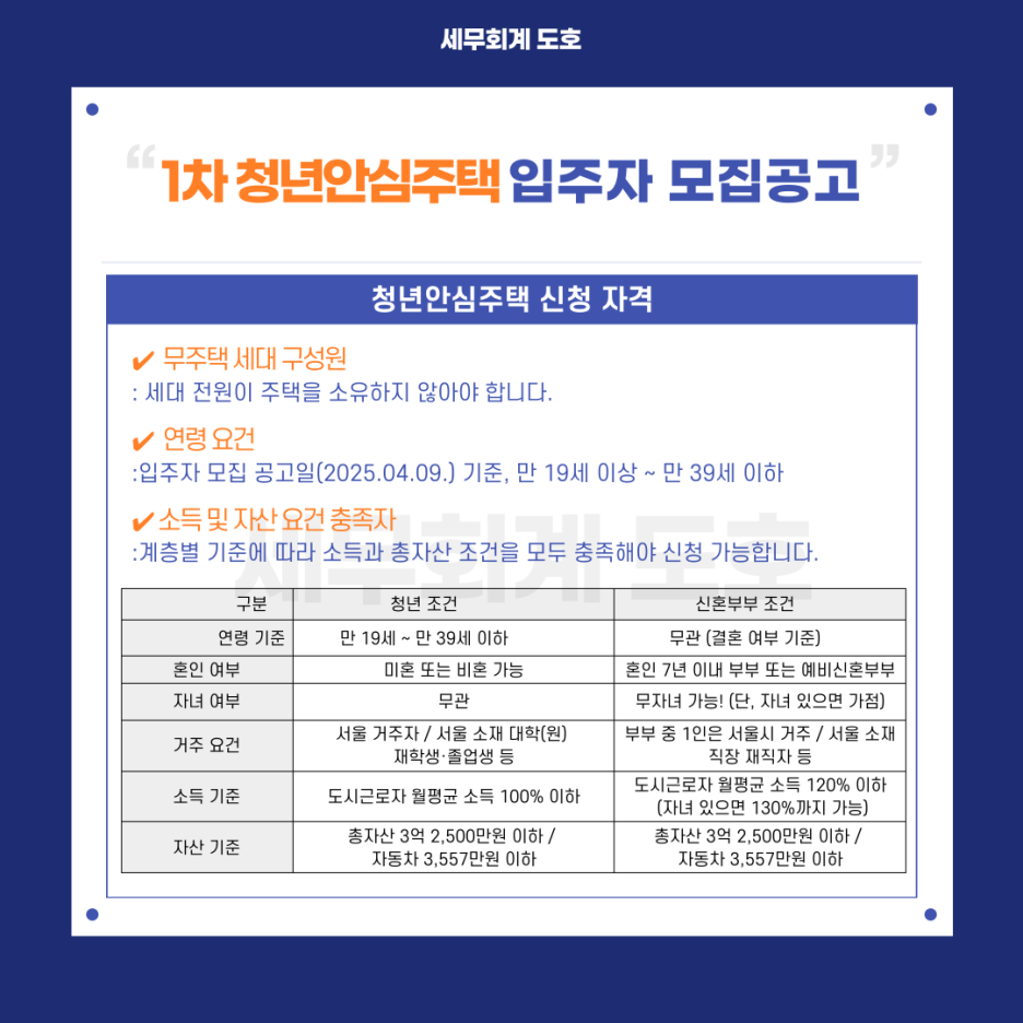: 입주자 모집 공고일(2025.04.09.) 기준, 만 19세 이상 ~ 만 39세 이하