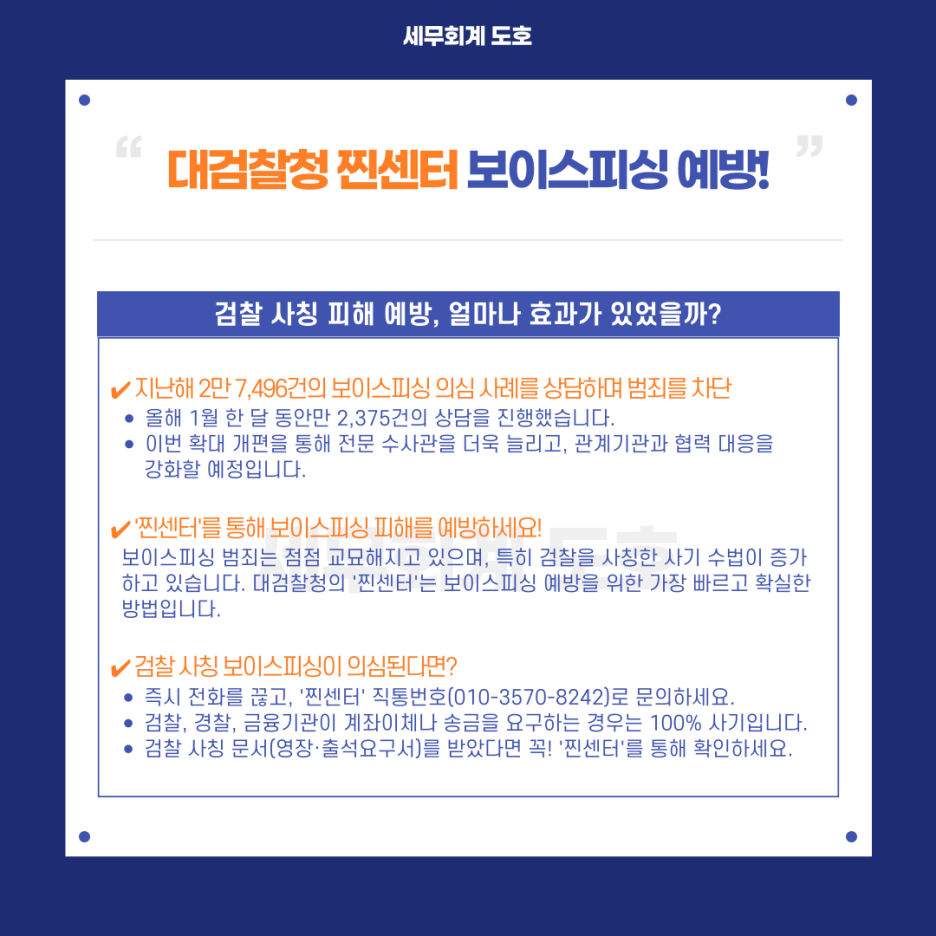 🌟 보이스피싱 예방! 검찰 사칭 진위 확인 콜센터 확대 운영 🌟